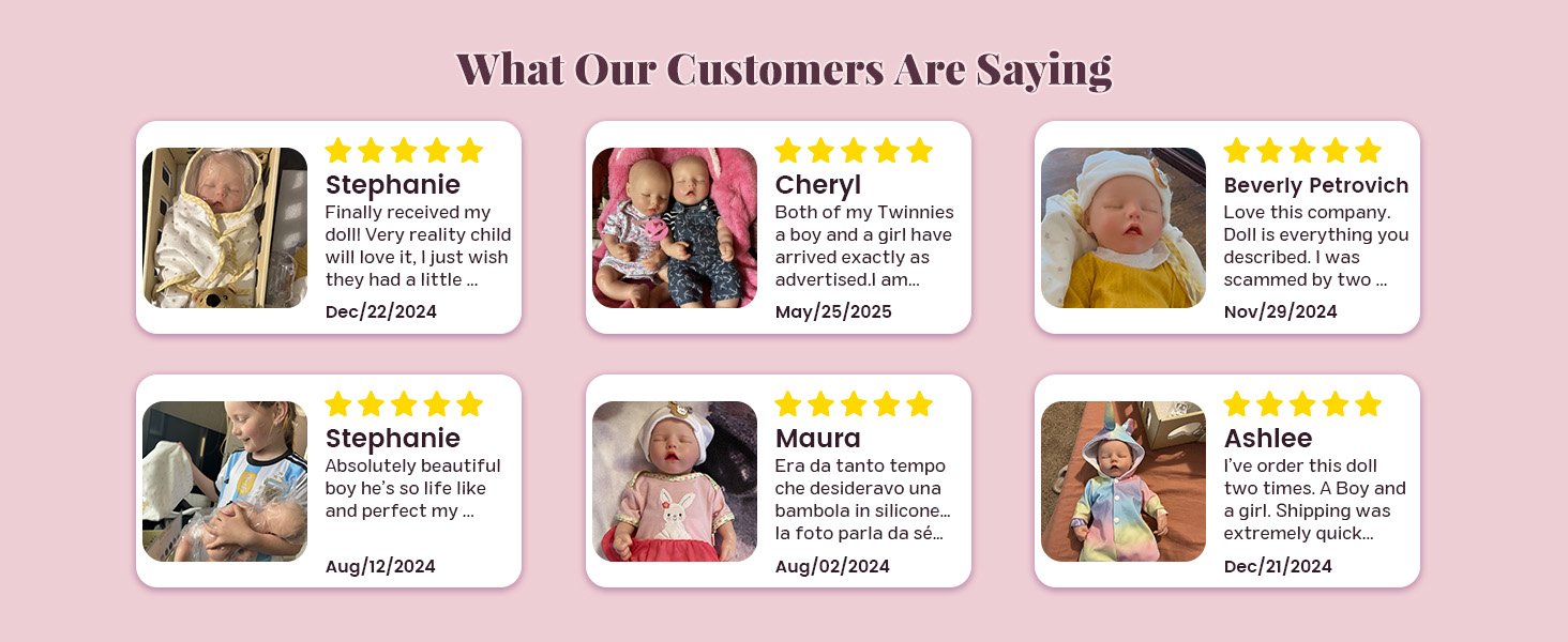 Babeside creates premium reborn dolls, ensuring each baby is unique and adorable. At Babeside, If you're not happy with your purchase for any reason, Please contact our support team at support@babeside.com promptly, and we will offer you solutions according to your case.
