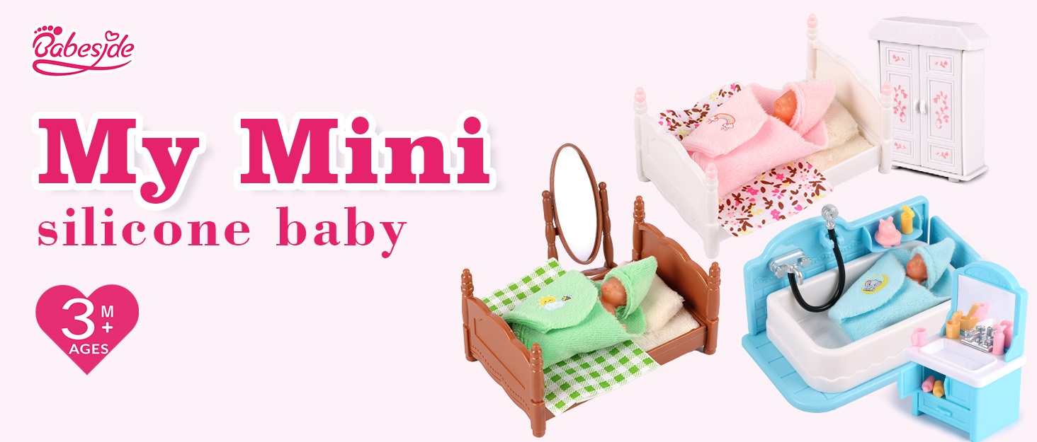Babeside Aurora 3" Mini Full Silicone Sleeping Reborn Baby Girl with Playset Accessories